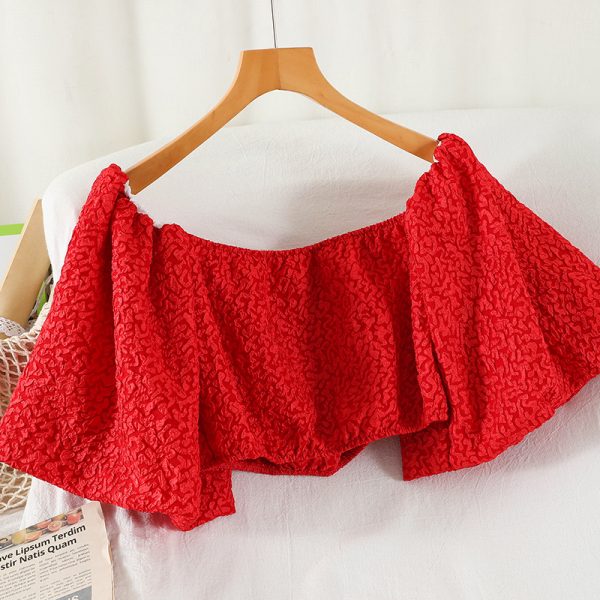Black/White/Red Sexy Slash Neck Short Blouse Women Summer Puff Sleeve Casual Party Shirt Female Elegant Tops New Blusas