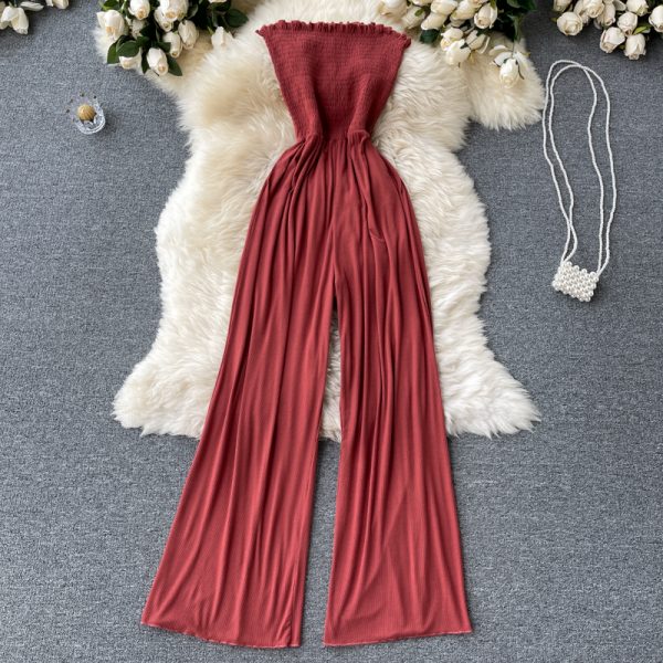 Sexy Strapless Romper Summer Red/Black/Pink/Gray Elastic High Waist Bodycon Wide Leg Jumpsuits Female Vacation Beach Playsuits