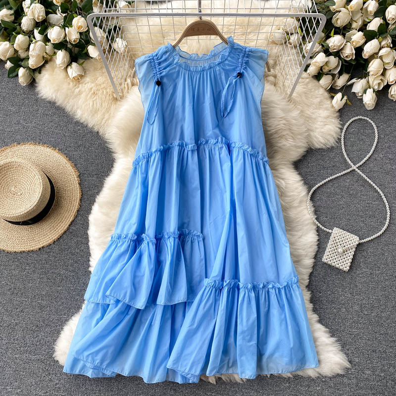 Orange/Blue/White Chiffon Mini Dress Women Summer Ruffle Loose A-Line Vestidos Sexy Drawstring Robe Female Summer Fashion