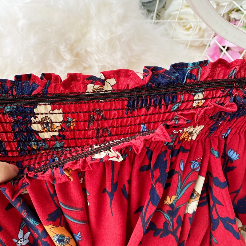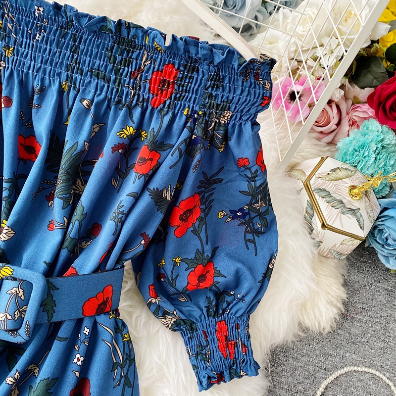 Bohemian Summer Vacation Beach Women Floral Print Chiffon Dress Sexy Slash Neck Off Shoulder Blue/Red Dresse Female New