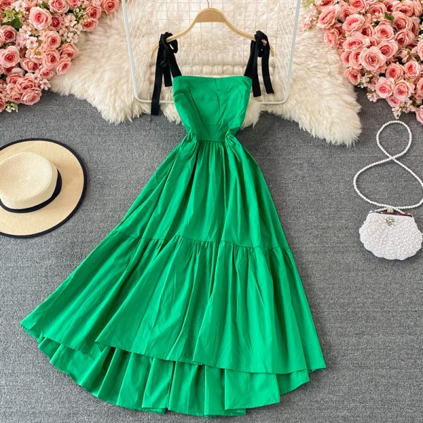 Green/Khaki/Black/White Sexy Spaghetti Strap Dress Women Beach Vacation Vestidos Female Sleeveless High Waist A-Line Robe