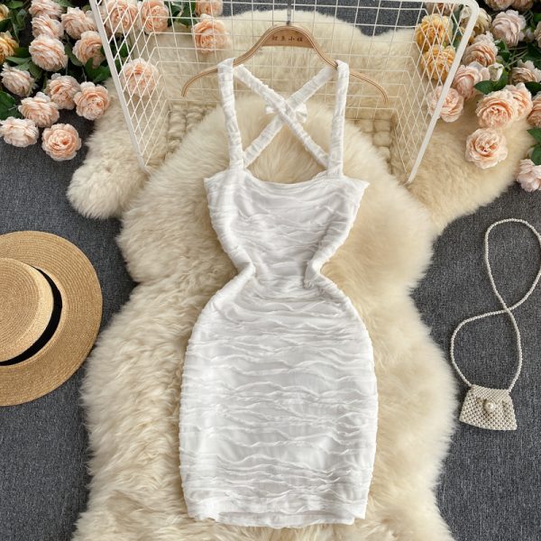 Black/White Sexy Draped Bodycon Dress Women Club Party Criss-Cross Spaghetti Strap Vestidos Elegant Open Back Mini Robe Summer