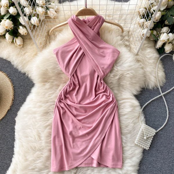 Sexy Bodycon Bandage Dress Women Blue/Pink Halter Sleeveless High Waist Mini Vestidos Vacation Beach Robe Female Summer New