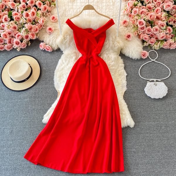 Black/Red Sexy V-Neck Party Long Dress For Women Elegant Sleeveless High Waist Big Swing Vestidos Summer Club Robe New
