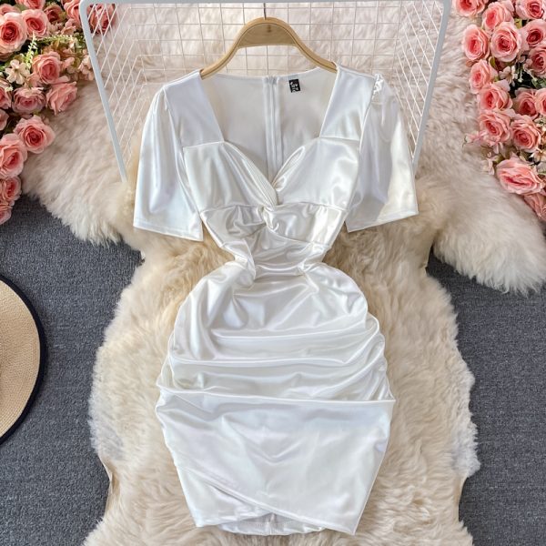 Sexy Women's Mini Dress Summer White/Black V-Neck High Waist Draped Party Bodycon Vestidos Female Slim Sheath Short Robe